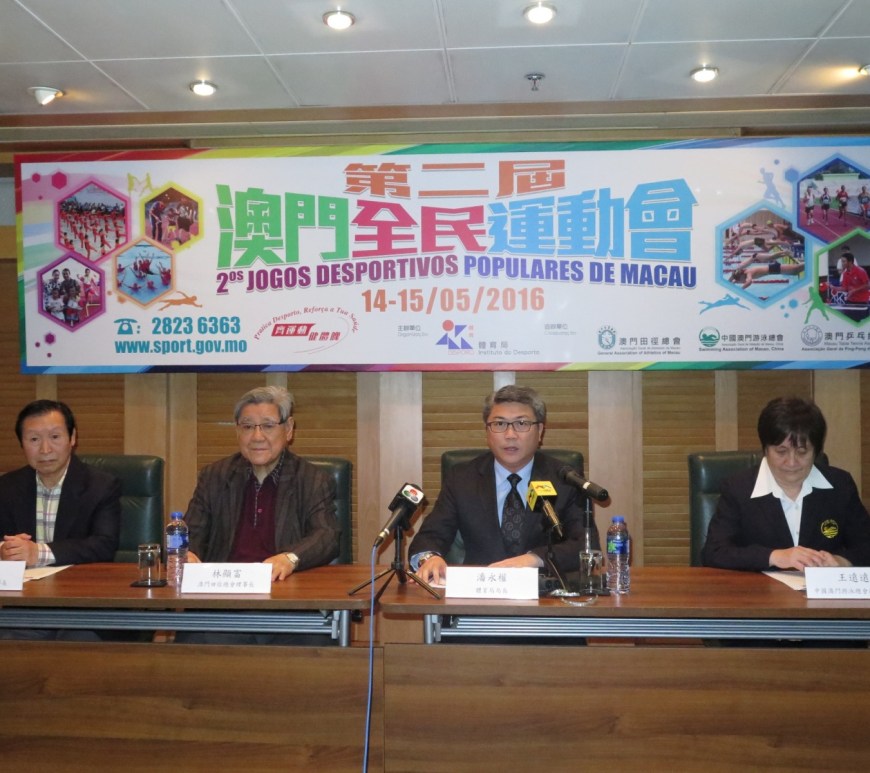 為了推動全澳市民參與體育鍛鍊,由體育局主辦、澳門田徑總會、中國澳門游泳總會及澳門乒乓總會協辦的第二屆澳門全民運動會,將於5月14至15日在奧林匹克體育中心運動場、游泳館及戶外天地舉行。