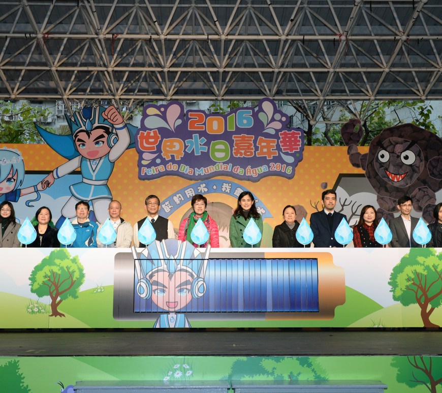 每年的3月22日是聯合國訂定的「世界水日」,旨在喚起世界各地對水資源問題的關注。特區政府推動構建節水型社會工作小組一如既往以行動響應節水號召,聯同多個民間社團舉辦「2016世界水日嘉年華」,海事及水務局節水宣傳劇《威水超人》的一眾角色跳出了故事世界來到嘉年華現場,透過遊戲和表演與市民互動,寓教於樂鼓勵市民珍惜用水。