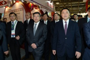 經濟財政司司長梁維特和運輸工務司司長羅立文參觀“2016澳門國際環保合作發展論壇及展覽”(MIECF)展覽場館2
