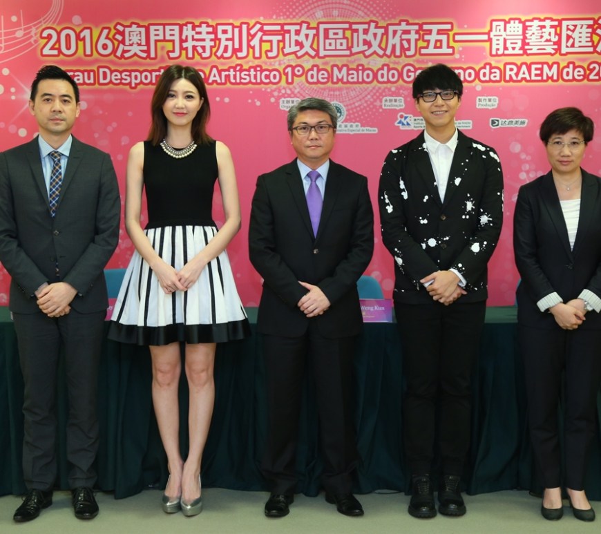由澳門特別行政區政府主辦、體育局承辦的「2016澳門特別行政區政府五一體藝匯演」,將於5月1日下午2時在塔石體育館舉行,是次匯演邀請了林俊傑、曹格、阿信、吳若希、吳業坤和鄭敬基六位實力派歌手,以及北京體育大學藝術體操隊來澳演出。承辦單位於4月7日舉行記者會,介紹活動詳情。體育局局長潘永權、副局長劉楚遠和林蓮嬌,以及歌手吳業坤和吳若希均出席了記者會。