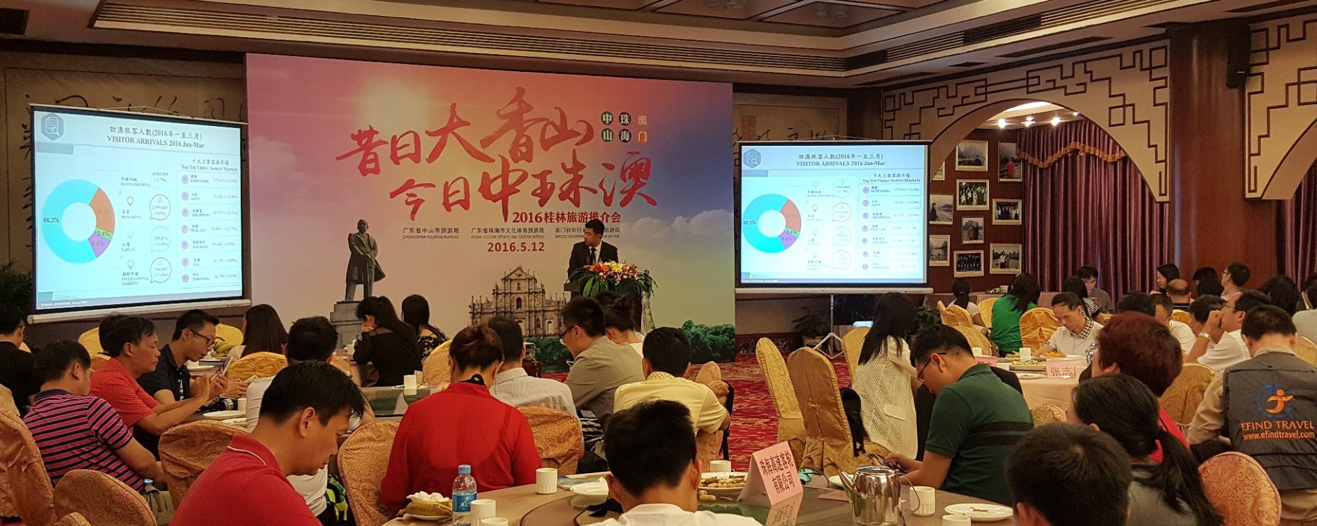 澳門旅遊局聯同中山市旅遊局和珠海市文化體育旅遊局於5月11至12日分別在廣西南寧市和桂林市舉辦中珠澳旅遊推介會,持續拓展高鐵沿線客源市場,進一步提升「昔日大香山,今日中珠澳」區域旅遊品牌,加強區域旅遊合作。
