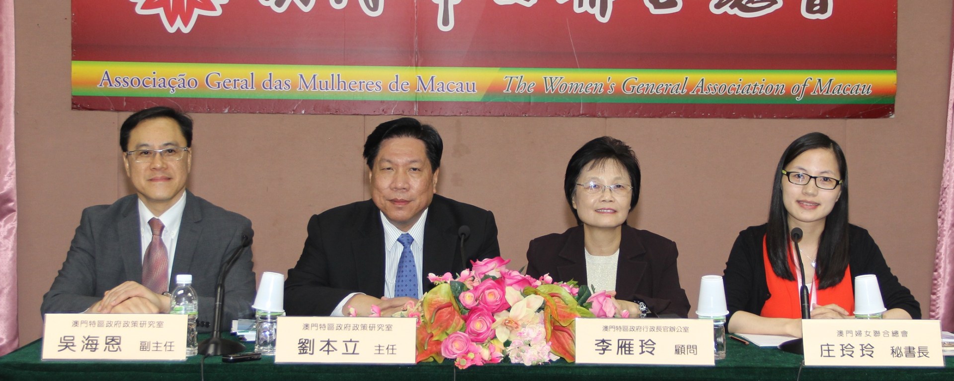 政策研究室主任劉本立、行政長官辦公室顧問李雁玲、政策研究室副主任吳海恩在5月13 日上午應邀到澳門婦聯大廈,出席由澳門婦女聯合總會主辦的《澳門特別行政區五年發展規劃(2016-2020年)草案文本》座談會,簡介五年規劃草案文本內容並和與會者進行互動交流。