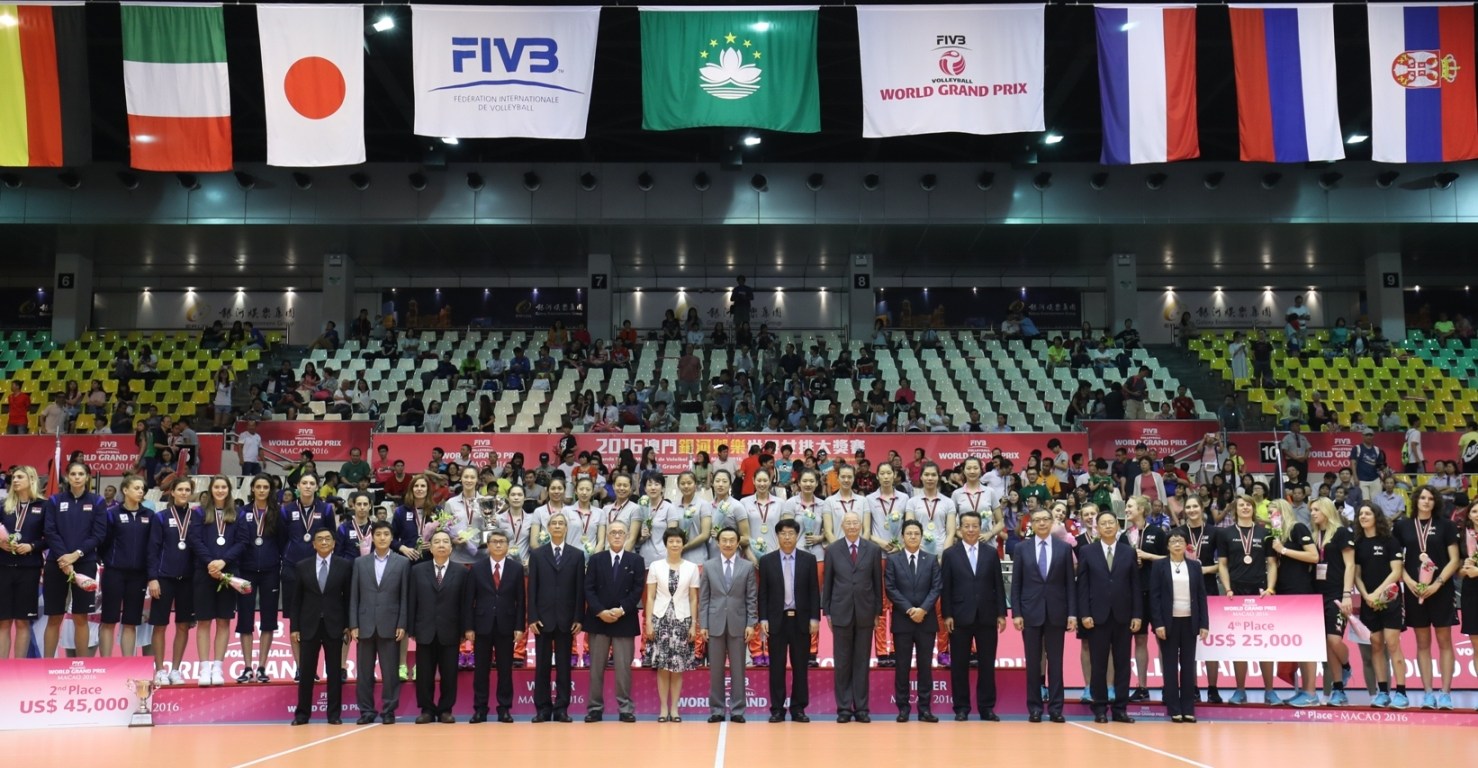 由國際排球聯會授權、體育局與中國澳門排球總會聯合主辦、銀河娛樂集團呈獻贊助的「2016澳門銀河娛樂世界女排大獎賽」,於6月19日於澳門綜藝館進行壓軸賽事,塞爾維亞先失一局反勝比利時3比2,奪得亞軍,而國家隊則以局數3比0擊敗巴西,三戰全勝勇奪澳門站桂冠。賽後社會文化司司長譚俊榮等嘉賓頒發冠軍獎項予國家隊,奪冠的國家隊更贏得冠軍獎金美元六萬元,而賽事最有價值球員獎項則由國家隊朱婷奪得。