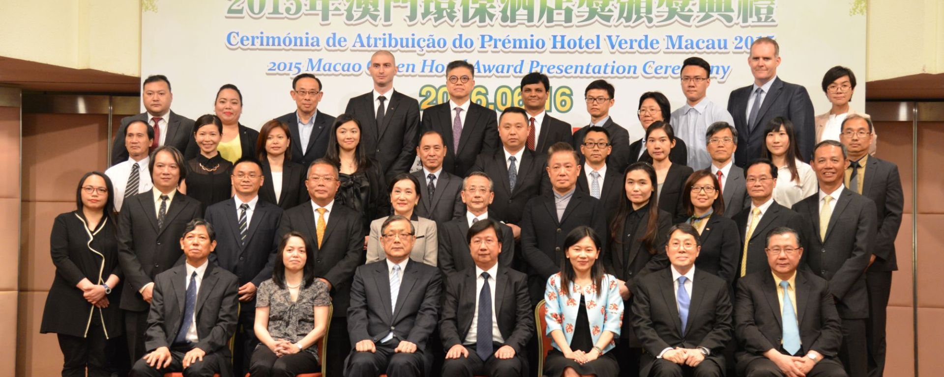 活動於 6月16日下午3時正假世貿中心蓮花廳隆重舉行,出席嘉賓包括作為主辦單位的環境保護局譚偉文局長、協辦單位旅遊局謝慶茜代局長、支持機構的澳門酒店旅業商會陳志杰會長、澳門酒店協會楊振業會長、澳門生產力暨科技轉移中心孫家雄理事長、澳門酒店旅業職工會李寶來會長以及顧問機構的香港生產力促進局陳淑媚高級顧問。頒獎典禮上對17間獲「2015年澳門環保酒店獎」的酒店及7間獲「積極推動環保獎」的酒店進行了嘉許。