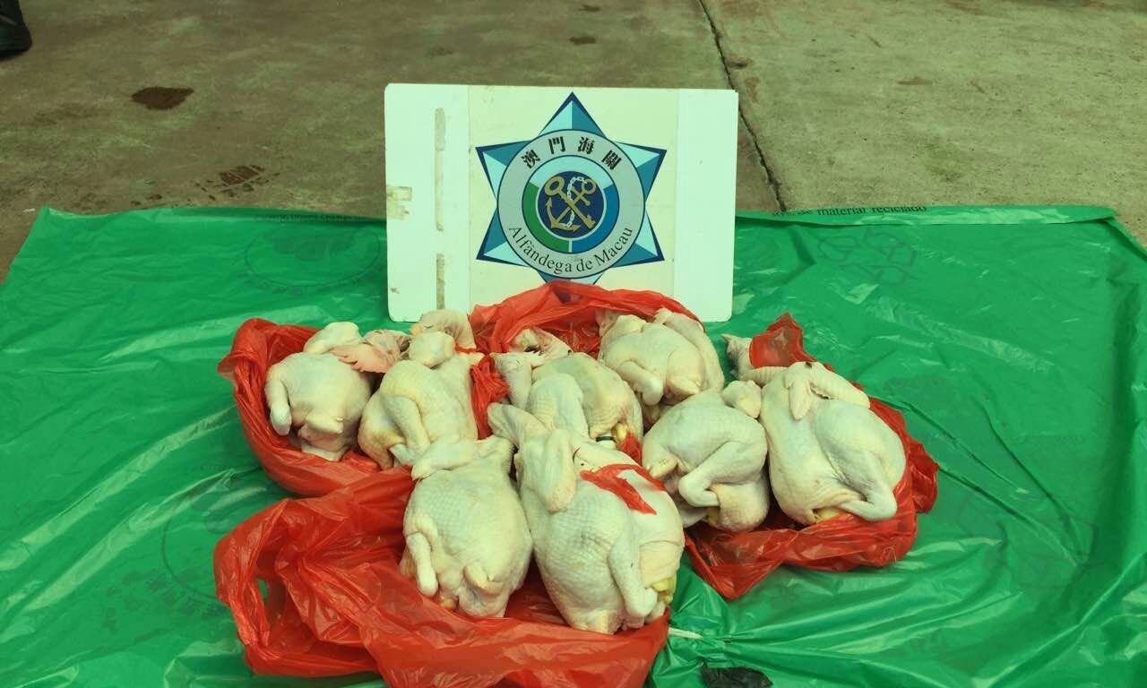 海關行動管理廳聯同民署食品安全中心執法人員,日前在澳門北區一帶巡查時,查獲一宗非法攜帶未經檢疫禽鳥的案件,一名剛從內地回澳的本澳女子,被發現身上夾帶8隻已屠宰之雞隻,海關將該名女子帶到海關總部協助調查,並以行政違法作出檢控。