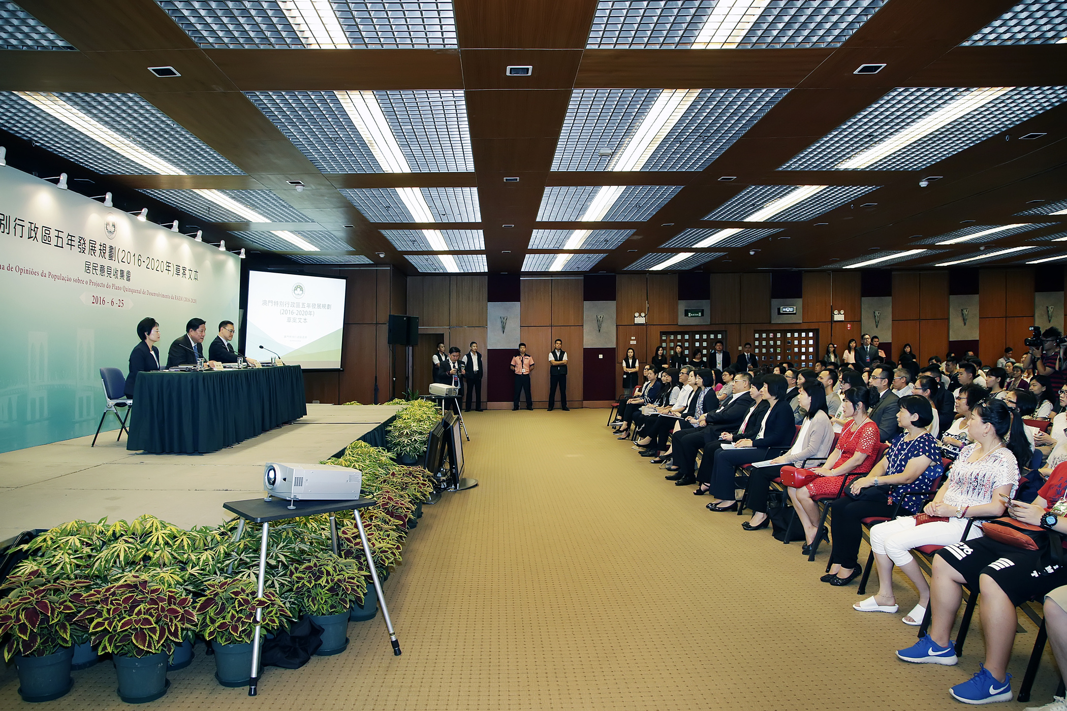 行政長官崔世安出席《澳門特別行政區五年發展規劃(2016-2020年)草案文本》第二場居民意見收集會