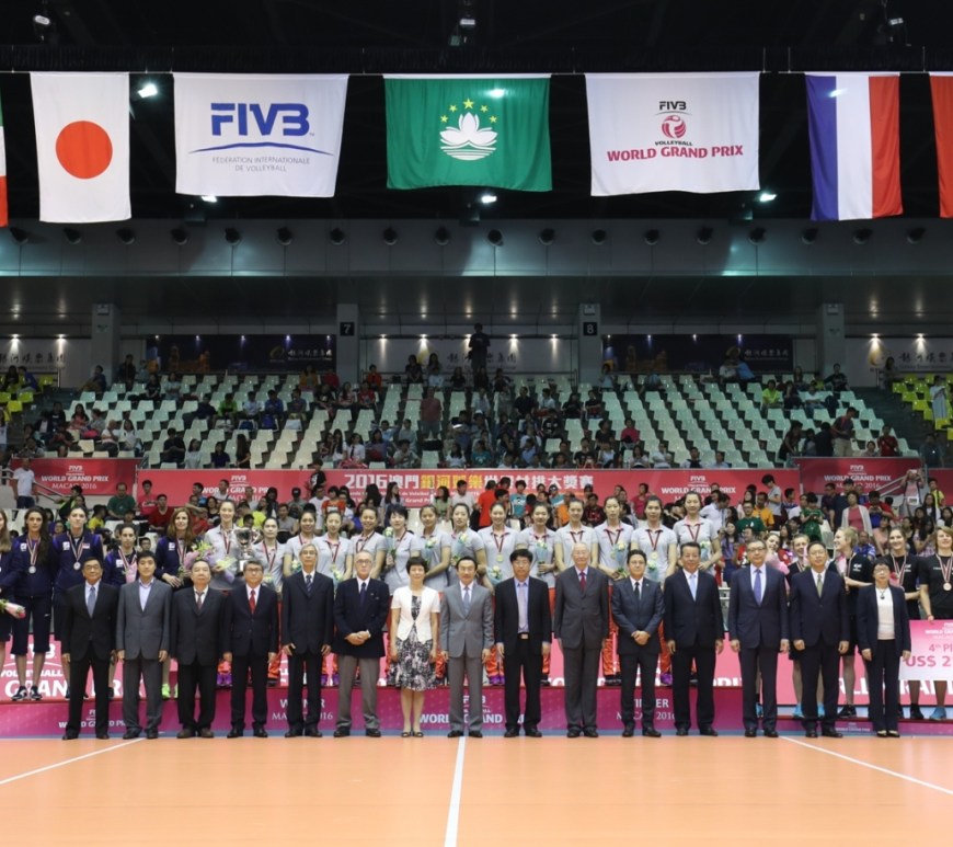 由國際排球聯會授權、體育局與中國澳門排球總會聯合主辦、銀河娛樂集團呈獻贊助的「2016澳門銀河娛樂世界女排大獎賽」,於6月19日於澳門綜藝館進行壓軸賽事,塞爾維亞先失一局反勝比利時3比2,奪得亞軍,而國家隊則以局數3比0擊敗巴西,三戰全勝勇奪澳門站桂冠。賽後社會文化司司長譚俊榮等嘉賓頒發冠軍獎項予國家隊,奪冠的國家隊更贏得冠軍獎金美元六萬元,而賽事最有價值球員獎項則由國家隊朱婷奪得。