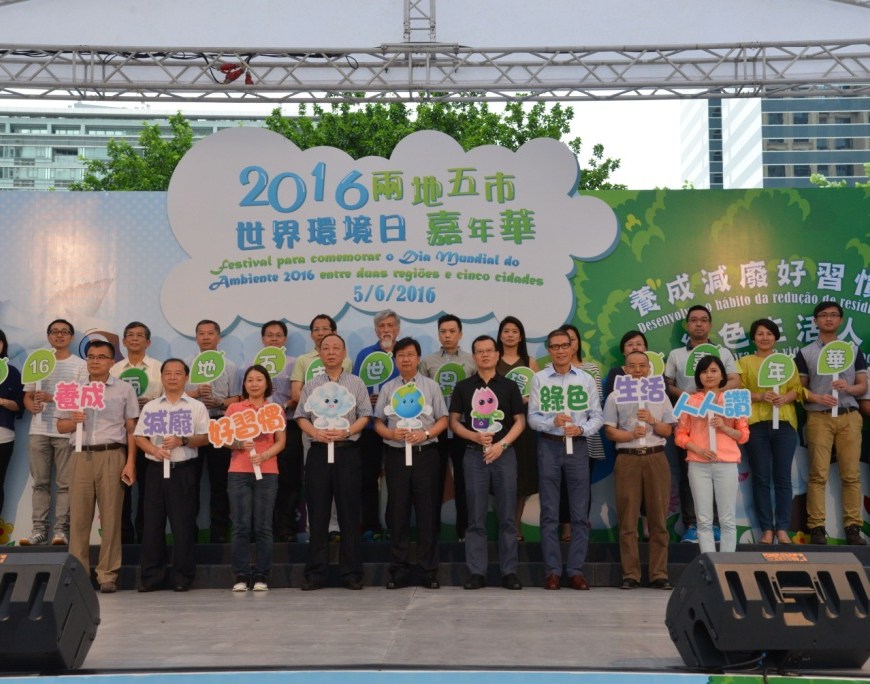 由環境保護局主辦的「2016兩地五市世界環境日嘉年華」於6月5日下午假友誼廣場舉行,圍繞「養成減廢好習慣 綠色生活人人讚」為主題,通過舞台活動、攤位遊戲、環保工作坊和環保Fun回收站點等豐富活動,向大眾宣揚環保訊息。