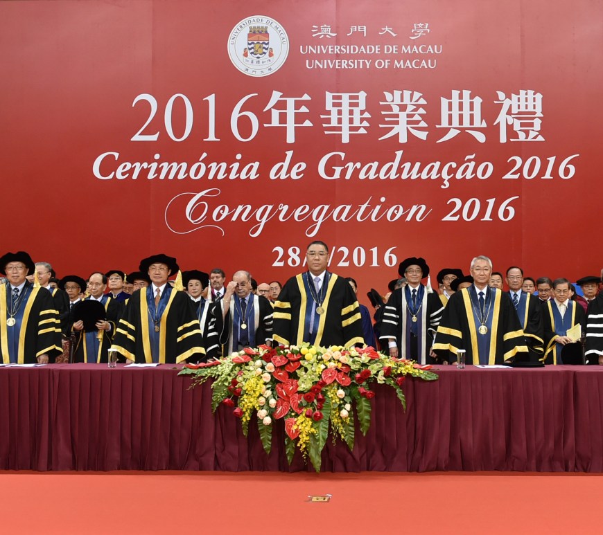 澳門大學於5月28日在澳大綜合體育館隆重舉行了2016年畢業典禮,向出席的一千多名畢業生頒發證書。行政長官兼澳大校監崔世安表示,澳大的辦學水平不斷提升,從軟硬件建設方面都顯示出為澳門培養優秀人才的良好勢頭,也具備了向國際一流大學目標進發的基本條件。