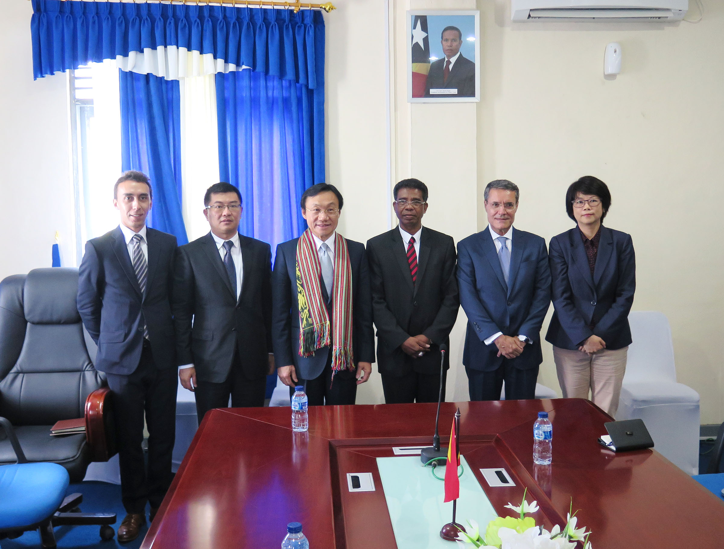 譚俊榮一行禮節性會晤東帝汶民主共和國教育部長António da Conceição (右三)後合影紀念