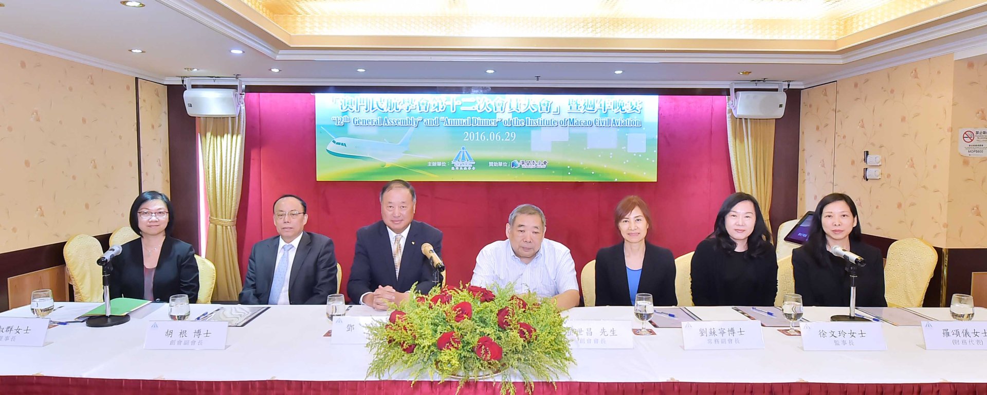 澳門民航學會於6月29日假聯邦大酒樓六樓舉行第十二次會員大會,會議由會長鄧軍主持,創會會長崔世昌、創會副會長胡根、常務副會長劉蘇寧、理事長鄭淑群、監事長徐文玲、義務法律顧問林笑雲、學會顧問以及近百名會員出席。會上決議了2015年度理事會工作報告、財務報告、監事會報告,全部均獲會員一致通過。