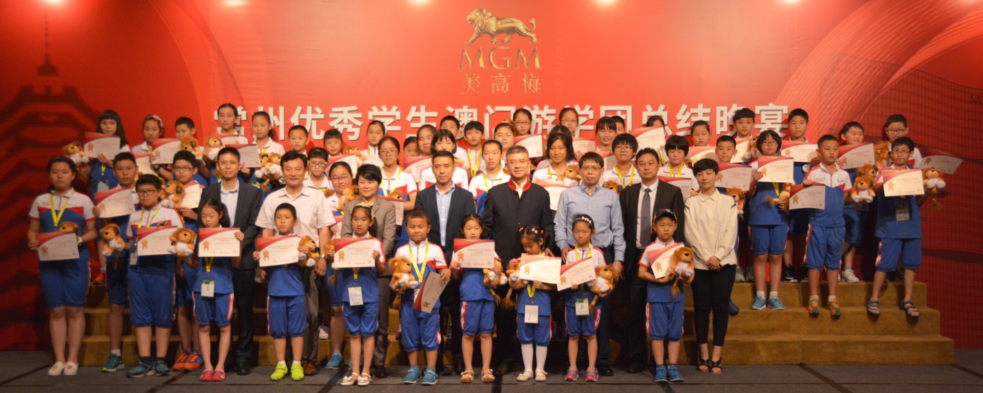 由江蘇省常州市政府旅遊局與中國釣魚臺旅遊(澳門)有限公司組織的「常州學生澳門遊學團」已於日前圓滿進行。美高梅特意為逾40名中小學生以及家長與隨團成員準備了豐富的藝術文化導賞、親子活動及總結晚宴,期望透過支持是次交流項目,令學生瞭解澳門悠久的歷史及中西共融的風土人情,豐富人生閱歷,並趁交流期間與澳門、常州兩地師生、家長增進友誼,擁有一段美好回憶。