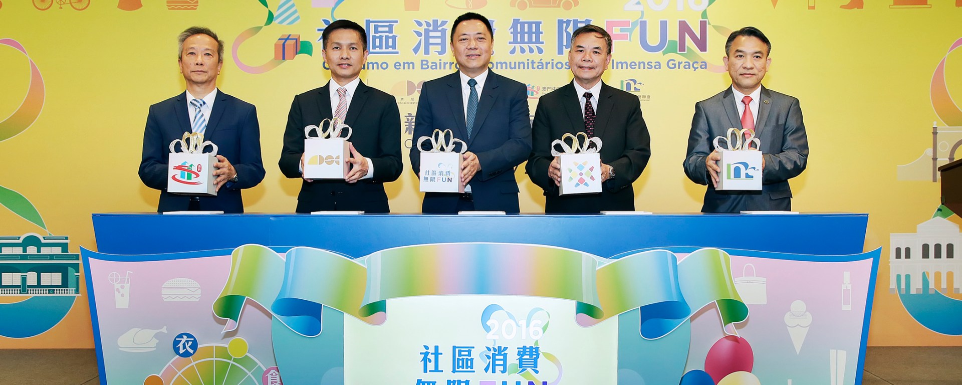 「社區消費無限FUN」系列活動計劃自2016年7月23日起,先後於離島區(2016/7/23 – 10/16)、中區南區(2016/9/10 – 12/31)、北區(2016/10/7 – 2017/1/6)展開,目前已獲得各區近2,000間商戶響應參與,向居民及旅客提供折扣優惠,三個地區工商聯亦會於活動期間在各區舉辦抽獎活動、特色節慶及表演活動,期望為居民及旅客帶來歡愉的消費體驗。
