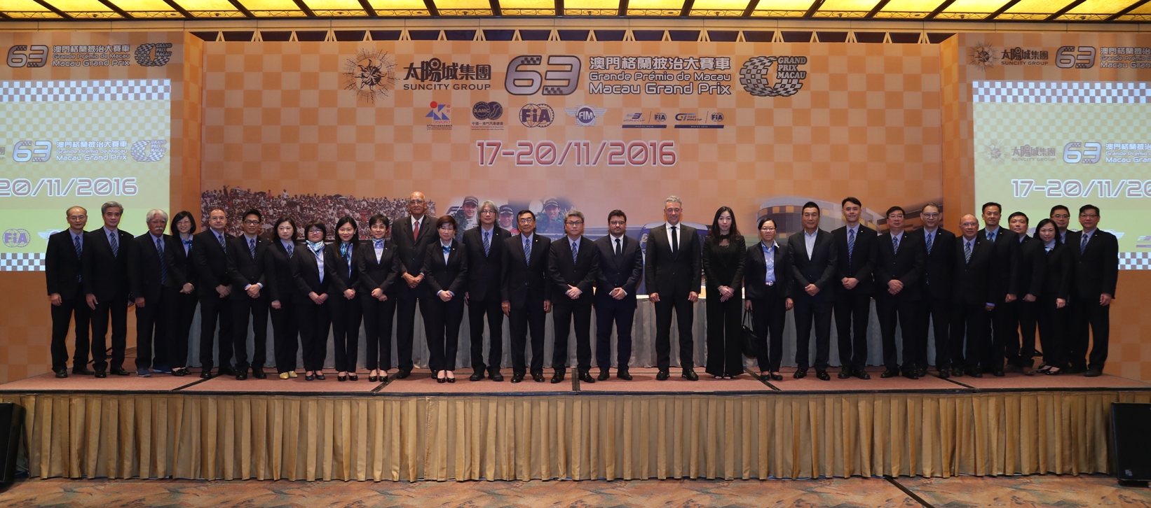 體育局局長、澳門格蘭披治大賽車組織委員會協調員潘永權,中國澳門汽車總會主席盧景昭、大賽車組織員委員會賽事專責小組組長鍾國榮、國際汽車聯會賽道和錦標賽部門主管貝特朗(Frédéric Bertrand)及國際汽聯GT委員會主席沙赫特(Christian Schacht)等出席新聞發佈會,並會見傳媒。