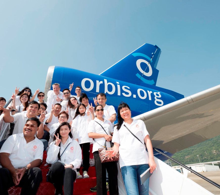 共60位金沙中國關懷大使周日及周一在奧比斯成員的導賞下,參觀了到臨停泊於澳門國際機場全球獨一無二的奧比斯眼科飛機醫院。