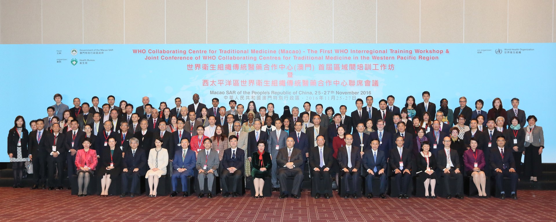 為推動全球傳統醫藥的發展,構建傳統醫藥國際合作和交流平台,並配合「世界衛生組織傳統醫藥戰略2014-2023」的執行,世界衛生組織傳統醫藥合作中心(澳門)首屆區域間培訓工作坊暨西太平洋區世界衛生組織傳統醫藥合作中心聯席會議於11月25日開幕。澳門特區行政長官崔世安博士、世界衛生組織總幹事陳馮富珍博士及國家衛生和計劃生育委員會副主任、國家中醫藥管理局王國強局長分別於開幕典禮上致辭,主禮嘉賓還有中央人民政府駐澳門特別行政區聯絡辦公室薛曉峰副主任、外交部駐澳門特別行政區特派員公署葉大波特派員、香港食物及衛生局高永文局長、澳門特區政府社會文化司譚俊榮司長、世界衛生組織助理總幹事任明輝博士及澳門特區政府衛生局李展潤局長等。