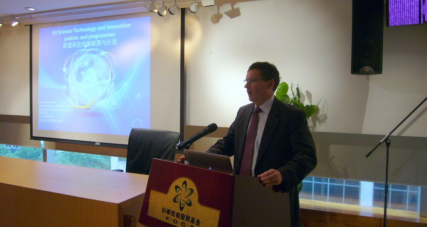 薄思睿參贊表示「地平線2020計劃」是歐盟有史以來規模最大的研發創新計劃,擬在7年時間(2014-2020年)內投資近800億歐元,面向全世界開放,也面向澳門的科研人員和單位開放,希望澳門的科研人員能與歐盟的同行展開合作,共同申請。澳門團隊在參與過程中遇到任何疑問和困難,歐盟駐京和駐港澳的相關部門都會全力提供協助。Frederic Bretar先生介紹了法國參與「地平線2020計劃」的情況,並表示歡迎澳門與法國加強科技方面的交流和合作。