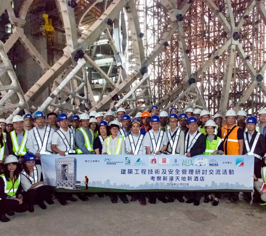 新濠天地新酒店的獨特及創新設計不斷吸引國際目光,其高度嚴格的安全管理標準更屢獲業界表揚。上星期,新濠博亞娛樂與本澳建築業界的八大協會及商會合作主辦「建築工程技術及安全管理」研討交流活動—新濠天地新酒店的專業工地參觀,介紹這座破格的建築物為全球建築設計及工程施工界帶來的劃時代突破,以及其獲獎無數的安全管理和先進建築安全科技。這個參觀安排進一步展演新濠博亞娛樂在本澳構建職業安全健康文化的決心,並得到澳門勞工局的全力支持成為活動支持單位。
