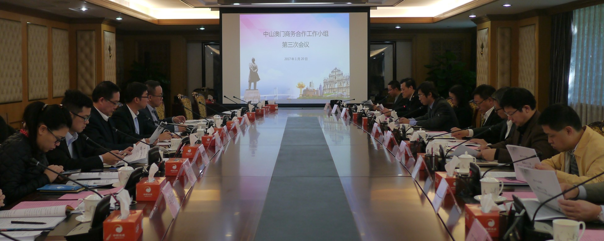 澳門貿易投資促進局主席、商務合作工作小組澳門方組長張祖榮率領一行7人,於1月20日到中山,與中山市人民政府副市長、商務合作工作小組中山方代表領導雷岳龍,進行中山與澳門商務合作工作小組會議,議程主要總結2016年度中山與澳門在商務合作方面的工作、探討及交流2017年工作計劃及完善兩地商務合作發展方式等。