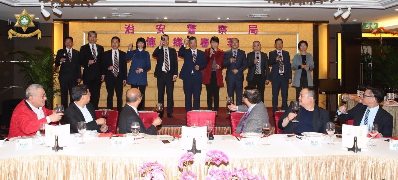 2017年2月15日晚,治安警察局假座萬豪軒酒家舉行傳媒春茗。治安警察局每年都會藉著新春佳節,在歡天喜慶的氣氛下與傳媒朋友共聚一堂,回顧過去,展望未來。出席春茗的官員及嘉賓包括治安警察局梁文昌局長、黃子暉副局長及各廳級主管,還有新聞局陳致平局長以及本澳各報社社長、傳媒機構主管和代表、記者朋友等。