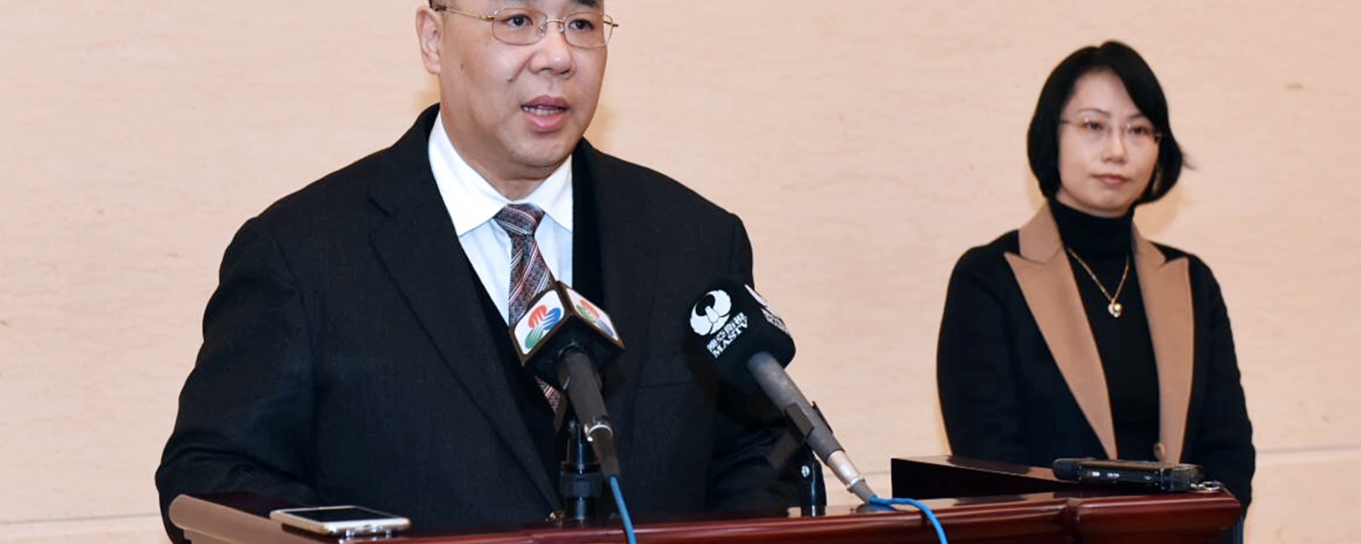 高層會晤後,行政長官及澳門貿易投資促進局主席張祖榮、旅遊局局長文綺華、澳門投資發展股份有限公司董事會主席呂紅會見本澳傳媒。