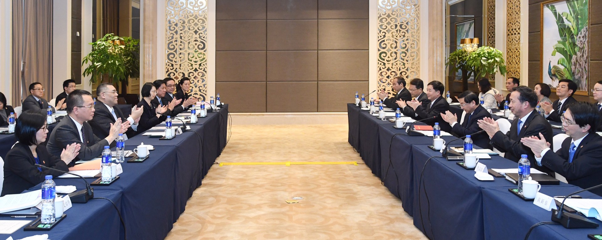 行政長官崔世安和福建省省長于偉國下午分別率領兩地政府代表團參與會晤,並作發言,閩澳雙方多個相關部門的官員亦就商貿投資、優勢產業、民心相通等方面的合作部署發表意見,進行交流。