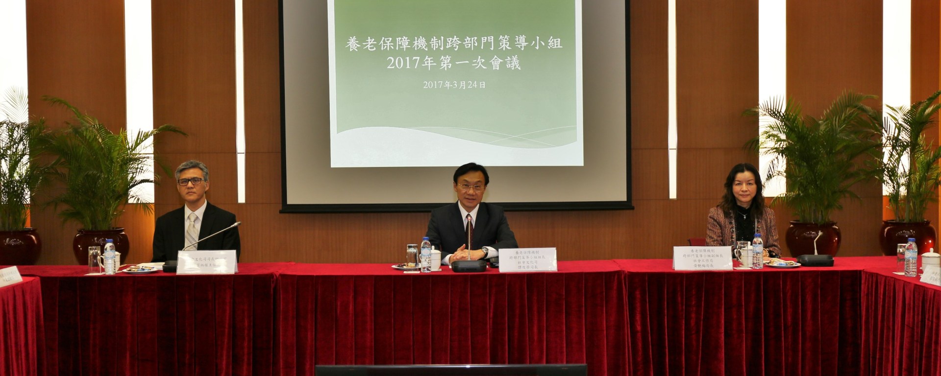 養老保障機制跨部門策導小組於3月24日在政府總部多功能廳召開本年度第一次全體會議,由策導小組組長、社會文化司譚俊榮司長主持。
