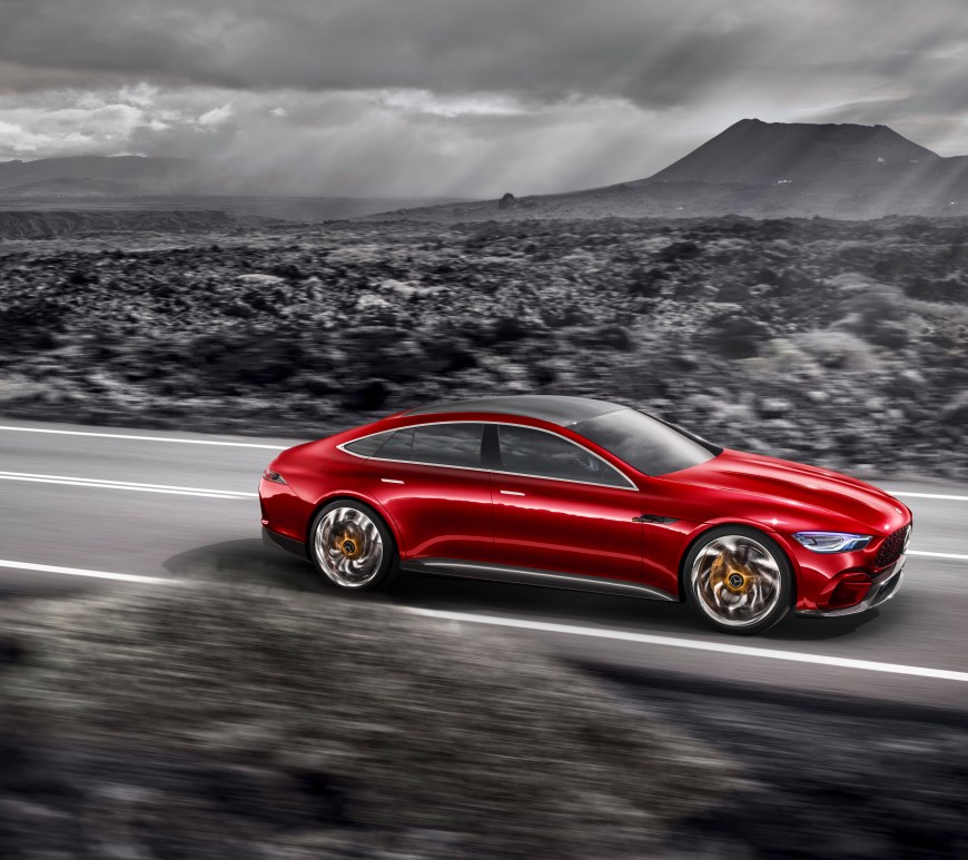 今年是Mercedes-AMG 品牌50周年,不僅要慶祝過去和現在取得的成就,更重要的是放眼未來。這個卓越的跑車品牌透過Mercedes-AMG GT Concept展車揭示 AMG 正在為動力裝置找尋替代方案。除此之外,這部四門轎跑更揭示 AMG GT車系的未來發展方向。這是繼SLS AMG 和 AMG GT之後的第三款車型,由Affalterbach總部完全自主進行研發。車頭和車尾的標記和基本設計元素顯示了作為 AMG GT家族成員的特徵。倒後鏡頭上的「EQ Power+」標誌著 AMG 混合科技所帶來的性能提升。
