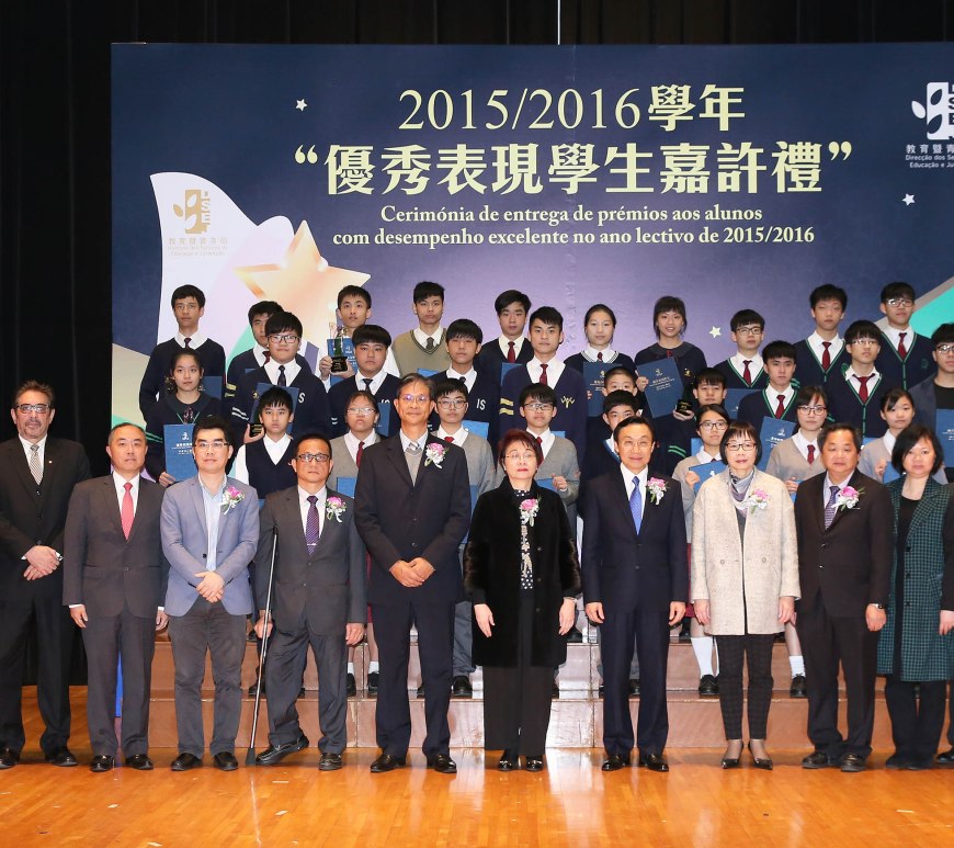 為表揚優秀表現的學生,鼓勵他們積極學習,爭取佳績,提升素質,傳揚積極向上的精神,教育暨青年局於2月23日下午5時在中葡職業技術學校舉行首屆(2015/2016學年)優秀表現學生嘉許禮,嘉許該學年參加地區性和國際性活動或比賽榮獲佳績的學生。典禮由社會文化司司長譚俊榮主持並向優秀學生頒授「優秀表現學生」榮譽;出席典禮的還包括教青局局長梁勵、社會文化司司長辦公室顧問惠程勇及林曉白、教青局副局長郭小麗及主管人員,澳門中華教育會、澳門天主教學校聯會、澳門公職教育協會的代表,非高等教育委員會委員,以及學校領導、教師、獲嘉許的學生及其親友等共約二百五十人。 梁勵在致辭時表示,特區政府在非高等教育的人才培養方面,積極通過政策引導、資源投入,以及專項計劃等措施,促進澳門教育公平性,支持學校完善教學環境,支援和推動學校開展多元化的教育活動和計劃,不斷提升教與學的素質,發揮學生潛能。優秀學生的傑出表現,是教育界共同努力的成果。 嘉許禮上,譚俊榮向7名獲個人獎的學生及3個獲獎的代表隊頒授「優秀表現學生」榮譽,並在梁勵陪同下與獲嘉許的學生座談交流,勉勵學生繼續努力成才,將來為澳門、為國家作更大的貢獻。此外,嘉許禮還播放了獲嘉許學生及團隊代表的獲獎感言短片。 獲得首屆(2015/2016學年)「優秀表現學生」榮譽的7名獲嘉許學生及3個團隊分別是李君濠、李偉誠、吳嘉慧、周昊天、周家熙、陳俊、魏可盈,以及澳門坊眾學校代表隊、澳門學生代表隊及鏡平學校代表隊。 Continue reading 首屆優秀表現學生嘉許禮圓滿結束