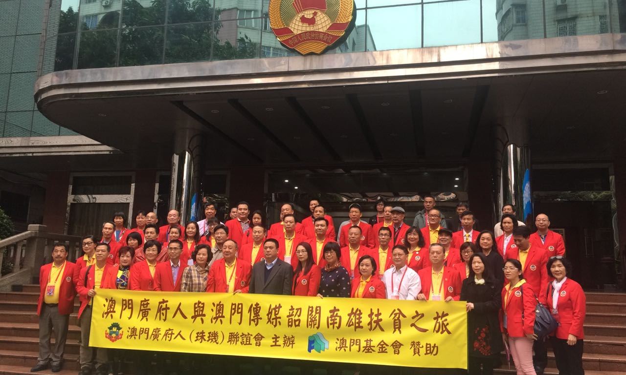澳門廣府人(珠璣)聯誼會日前邀請本澳多家媒體前往韶關南雄,開展為期三天扶貧之旅,活動獲澳門基金會贊助。代表團一行逾八十人,由該會會長梁伯進擔任團長,執行會長黃曉媚、盧德基、副會長兼立法議員麥瑞權任副團長,於拱北乘旅遊車赴韶關,途經廣州,拜訪廣東省廣府人珠璣巷後裔海外聯誼會創會會長黎子流多會長伍亮。他們對代表團的到來表示歡迎,並充分肯定澳門廣府人(珠璣)聯誼會的會務工作。