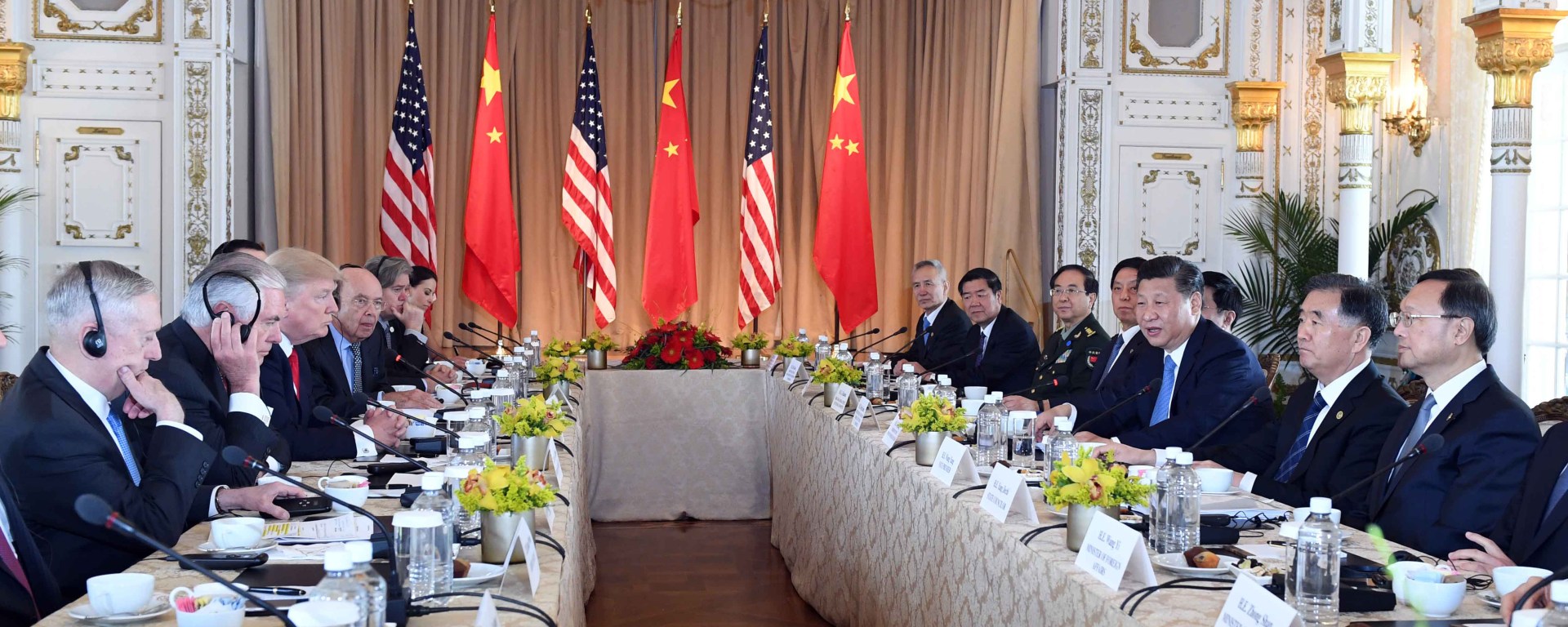 王滬寧、汪洋、栗戰書、楊潔篪、房峰輝,美國國務卿蒂勒森及多位內閣成員、白宮高級官員等出席。