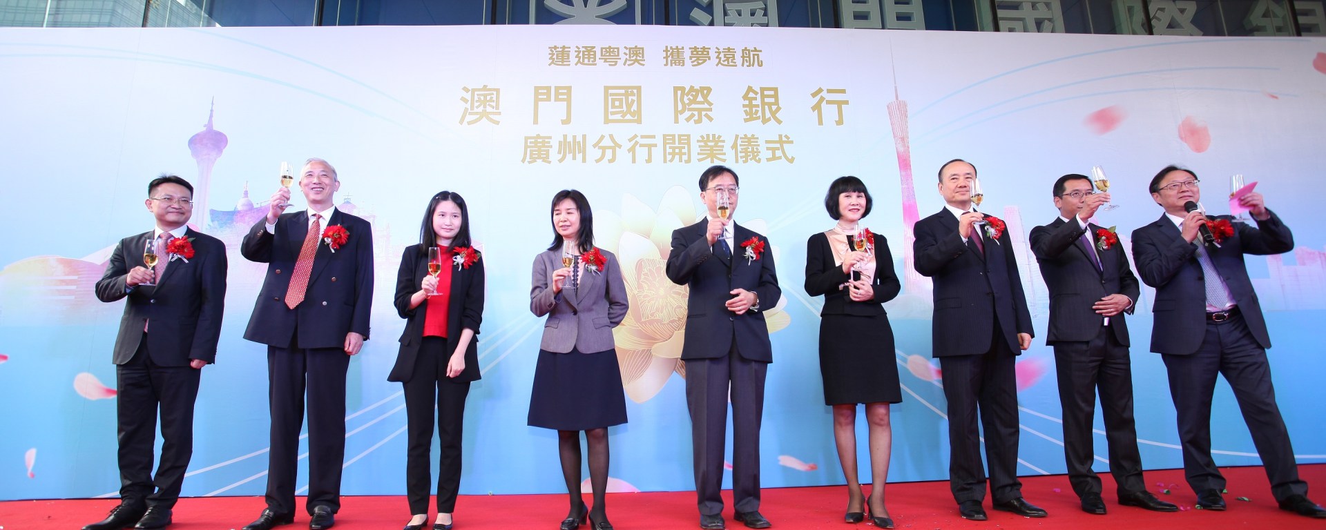 出席本次開業儀式的主要嘉賓包括:廣州市政府副市長蔡朝林先生、澳門特區政府金融管理局行政委員會主席丁連星先生、中央人民政府駐澳門特別行政區聯絡辦公室經濟部副部長朱宏女士、中國人民銀行廣州分行黨委副書記副行長李思敏女士、廣州市金融工作局局長邱億通先生、廣州市港澳事務辦公室副主任曾慶椿先生、廣州市天河區區委常委常務副區長潘偉志先生、澳門中國企業協會會長許開程先生、澳門特別行政區貿易促進局代表陳卓嘉女士、澳門銀行同業公會主席代表中國銀行副行長王軍先生、澳門國際銀行董事長呂耀明先生、澳門國際銀行總經理焦雲迪先生等領導。
