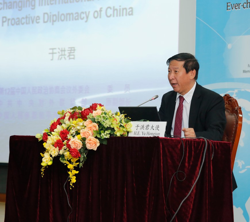 中華人民共和國外交部駐澳門特別行政區特派員公署和澳門大學合辦的“變幻莫測的國際關係和積極有為的中國外交"講座於4月28日舉行,由第十二屆全國政協外事委員會委員、中共中央對外聯絡部原副部長、前中國駐烏茲別克斯坦特命全權大使于洪君主講,剖析中國在世界大裂變中如何因勢利導地加速和平崛起的進程。