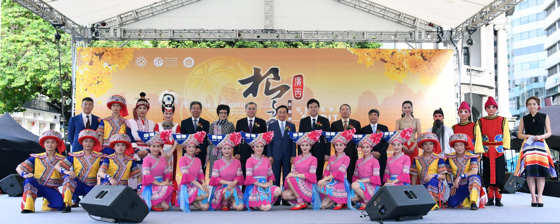 化遺產保護領域的合作和交流,並讓澳門市民更好地認識祖國深厚的文化底蘊及豐富的非物質文化遺產,由國家文化部與澳門特別行政區政府社會文化司主辦、澳門特別行政區政府文化局與廣西壯族自治區文化廳承辦的《根與魂─廣西非物質文化遺產展演》,於六月八日(星期四)下午五時在議事亭前地舉行盛大的開幕式。澳門特別行政區政府社會文化司司長譚俊榮、國家文化部副部長項兆倫、中央人民政府駐澳門特別行政區聯絡辦公室副主任薛曉峰、外交部駐澳門特別行政區特派員公署副特派員王冬、國家文化部港澳台辦公室副主任李健鋼、澳門特別行政區政府文化局局長梁曉鳴及廣西壯族自治區文化廳副廳長朱創偉出席主禮。 廣西壯族自治區風光旖旎、民族風情濃郁,其深厚的歷史底蘊和絢麗的民族傳統文化孕育出豐富的非物質文化遺產。廣西現有人類非物質文化遺產代表作一項,國家級非遺代表性項目五十項,自治區級非遺代表性項目五百八十三項。是次系列活動將為本澳市民展示具地方特色的傳統工藝,包括繡球、蠟染、六堡茶、馬尾繡等製作工藝,並透過精彩的舞台演出向觀眾展現桂劇、馬骨胡藝術、壯族歌圩習俗等多項廣西的非遺項目,機會難逢。