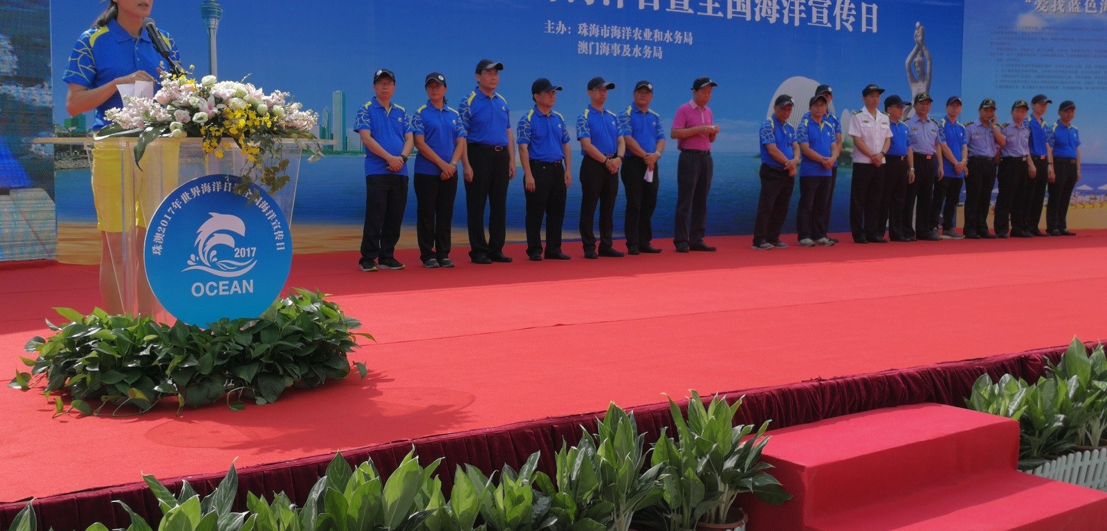 珠澳兩地今年於珠海市首次合辦“世界海洋日暨全國海洋宣傳日活動”,有關活動來年將於澳門舉行。參與是次活動的澳門代表包括,海事及水務局局長黃穗文、海事活動廳廳長胡柱鵬、海關海上監察廳副關務督察梁漢倫、副關務督察黃國權、民政總署自然保護研究處處長陳玉芬、澳門生態學會會長何偉添、澳門漁民互助會會長樊樹明、澳門遠洋漁業發展暨船東協會副會長何亞根及梁錦傑、澳門環保志願者協會會長莫錦培等。