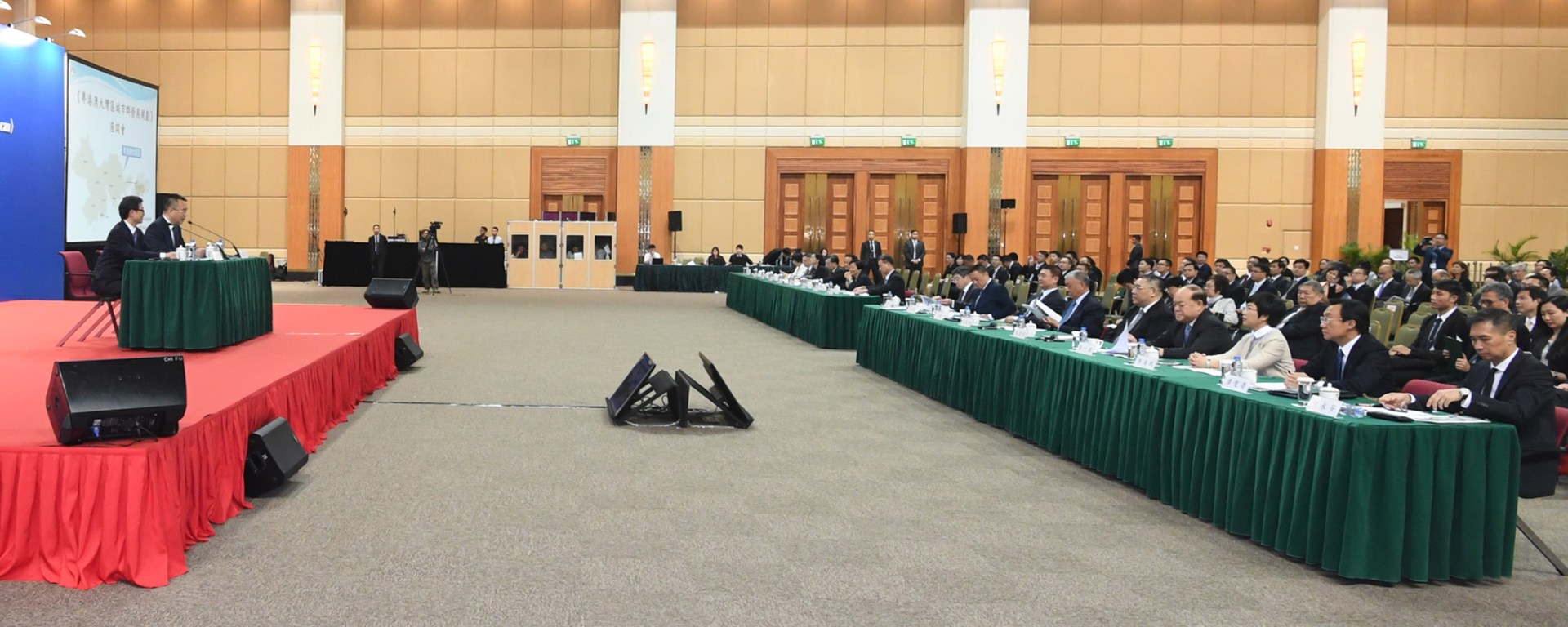 座談會由政府發言人陳致平主持,行政長官辦公室顧問高展鴻作介紹,闡述《粵港澳大灣區城市群發展規劃》,以及特區政府正就有關規劃開展意見徵集活動,以凝聚社會共識,共同參與大灣區的建設工作。