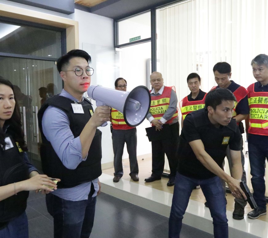 司法警察局今天進行一個代號「居安思危」的大型危機談判演習,全體談判組二十七名人員參與,演習由早上九時開始至下午五時結束,進行了多項的談判技巧、器材操作、遞送物資、接收傷者、談判隊員的交接更等程序的演習。