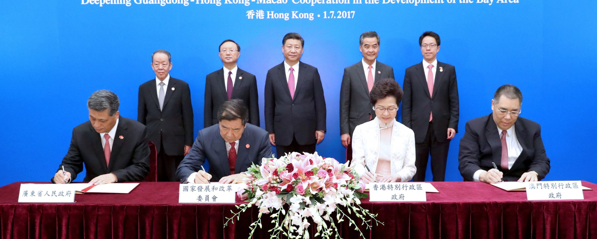在國家主席習近平的見證下,行政長官崔世安、香港特別行政區行政長官林鄭月娥、國家發展改革委員會主任何立峰和廣東省省長馬興瑞於7月1日上午在香港會議展覽中心簽署了《深化粵港澳合作 推進大灣區建設框架協議》。