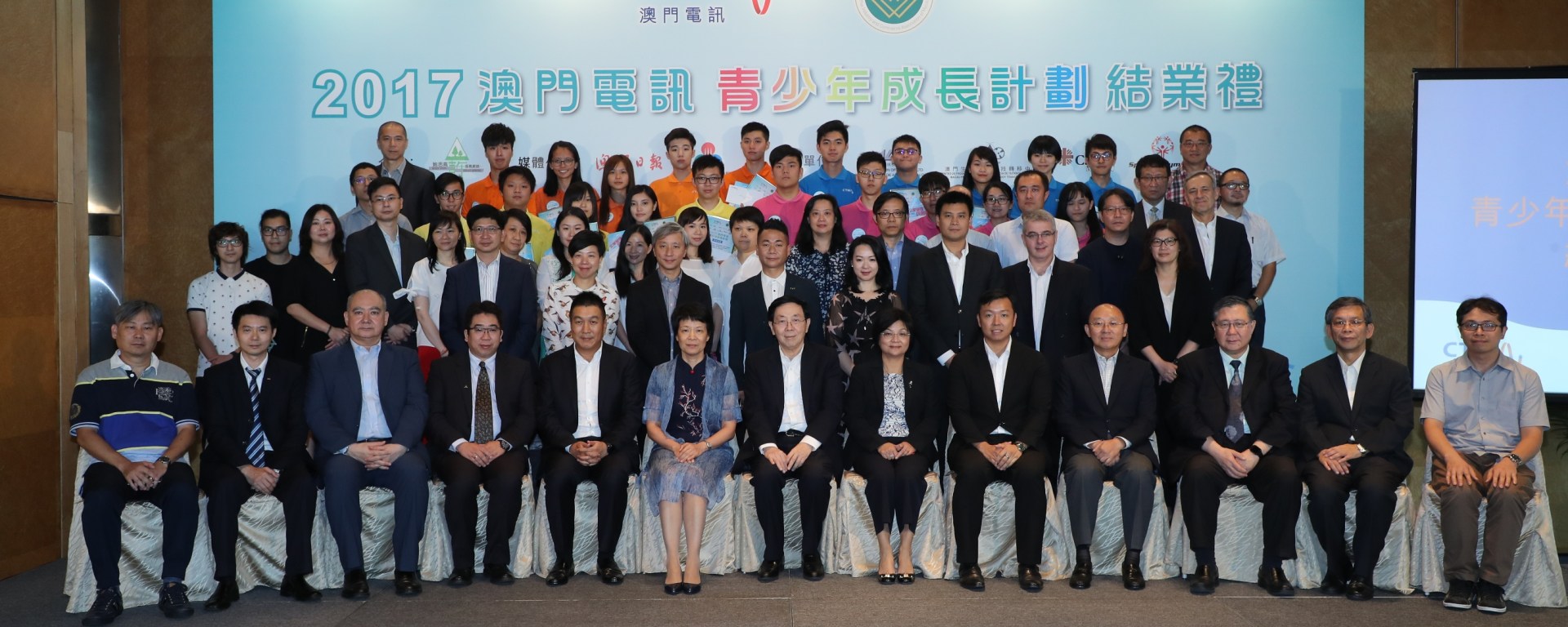 「澳門電訊青少年成長計劃2017」結業禮於7月21日下午假澳門旅遊塔舉行。出席嘉賓包括中央人民政府駐澳門特別行政區聯絡辦公室文化教育部徐婷部長、郵電局劉惠明局長、澳門工商聯會吳華威理事長、澳門鮑思高青年服務網絡葉永強行政總監、澳門日報陸波社長、澳廣視執行委員會白文浩主席、澳門生產力暨科技轉移中心孫家雄理事長、澳門機場管理有限公司工程部陳日升總監、澳門明愛潘志明總幹事、澳門特殊奧運會蕭宇康執行總監、交通事務局代表梁鉅笙先生,聯同中信國際電訊集團辛悅江主席及澳門電訊行政總裁潘福禧等,共同見證20位學員圓滿完成實習課程。