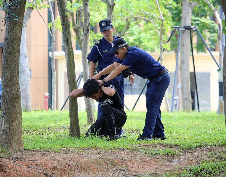 為強化珠澳兩地在澳大橫琴校區的反偷渡部署及應變能力,昨日(28日)上午10時,澳門海關聯同廣東邊防總隊第五支隊、澳門大學保安及交通事務處的人員,在校區內舉行“三方聯合反偷渡演練”,以加強三方人員協調執行反偷渡的能力,並藉此檢視相關通訊設備的效能。