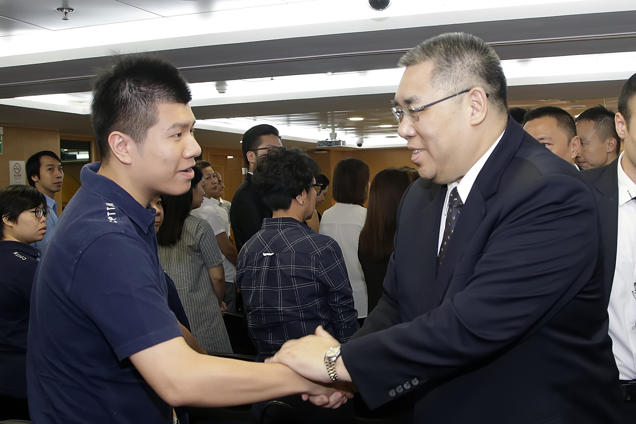 行政長官崔世安與經濟財政範疇工作人員握手2