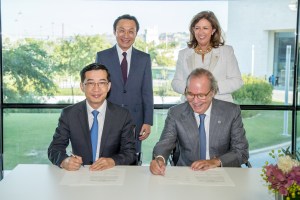 譚俊榮與香柏里莫基金會主席Leonor Beleza見證澳門衛生局與基金會簽署合作協議