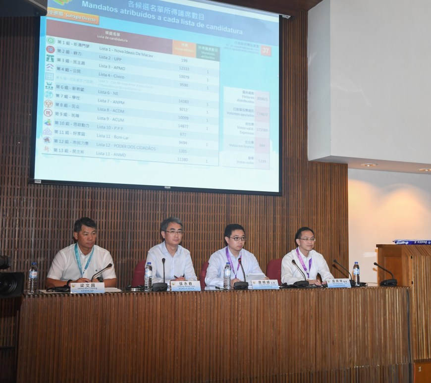 澳門特別行政區第六屆立法會選舉的投票程序經已完結,其中,直接選舉方面共有174,872位選民投票,投票率57.22%,初步點票工作在9月18日凌晨2時18分完成,各組別得票如下: