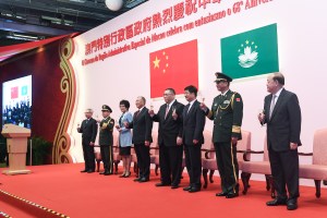 行政長官崔世安等在國慶招待酒會上與嘉賓祝酒