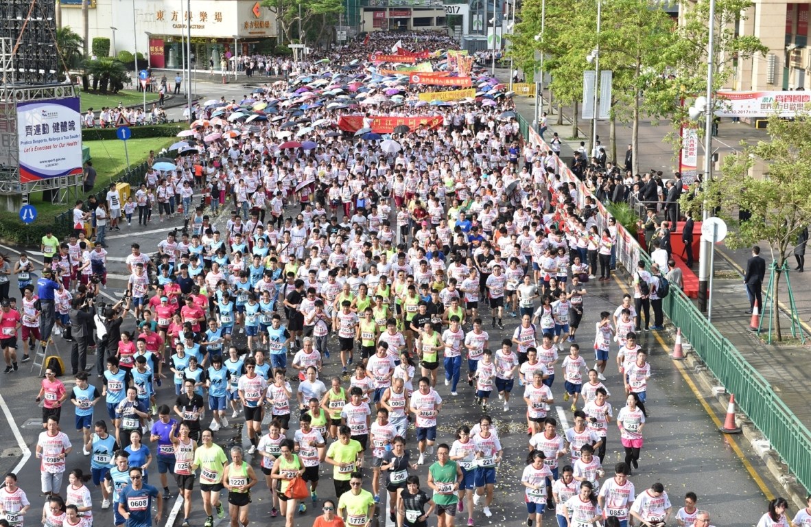 由澳門特別行政區政府主辦、體育局承辦、中國澳門田徑總會協辦之「2017澳人齊賀國慶世界步行日歡樂跑」活動,10月1日上午八時十五分於金蓮花廣場前舉行,由澳門特別行政區行政長官崔世安先生主持起步禮,吸引一萬三千名參加者在禮炮聲中愉快地起步。