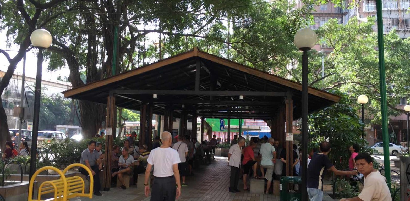 黑沙環三角花園位於人口密集的社區,是不少市民下棋會友消閒的聚集地。由於園內棋藝區的使用率高,為優化公園設施及聽取了使用者的意見後,民署於花園靠近拱形馬路一側的棋藝區建造一個避雨蔭棚,供市民遮陽擋雨之用,讓棋藝愛好者有更好的下棋消閒空間。