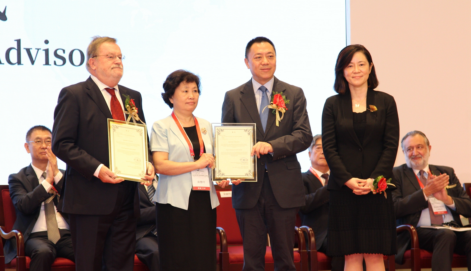梁維特司長、呂紅董事長向Gerhard Franz教授及呂玉波榮譽院長代表頒授産業園專家顧問委員會首席顧問聘書