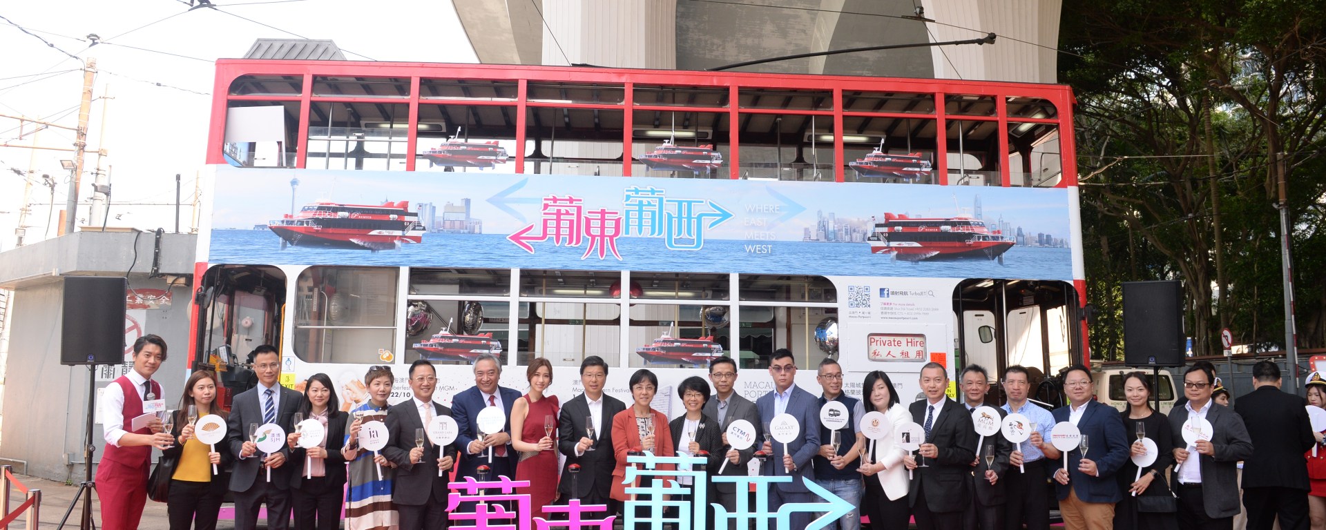 姚子羚與黎諾懿邀請活動嘉賓登上噴射飛航的「葡東葡西」電車巡遊前,更不忙介紹10月14日將舉行香港電車成立以來首次送出最多豐富禮品的電車,多份大獎包括澳門5星級酒店免費住宿、高級水療療程、豐富自助午餐等,禮品超過一萬份,保證滿載而歸。有興趣參加者只要登入以下網址進行簡單登記,即有機會登上「葡東葡西」電車贏取豐富禮品,親身感受澳門國際級盛事的多姿多彩。更多「葡東葡西」推廣詳情,歡迎瀏覽噴射飛航官方網頁www.turbojet.com.hk及Facebook專頁。