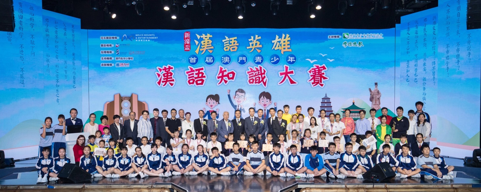 由澳門青少年教育促進會、學園週報主辦,新濠博亞娛樂有限公司冠名贊助的首屆新濠盃「漢語英雄」澳門青少年漢語知識大賽一連兩日在新濠影匯舉行。十四支澳門中小學校代表隊經過2日緊張激烈的角逐,中學組的新華學校和小學組的濠江中學附屬英才學校分別奪得首屆澳門青少年漢語知識大賽的「漢語英雄」稱號。大賽總評委程祥徽教授在頒獎典禮上高度評價學生們的賽時表現。他指出,普通話和粵語都能詮釋出漢語的魅力,並鼓勵更多熱愛漢語文化的澳門青少年學生參與到活動中來。
