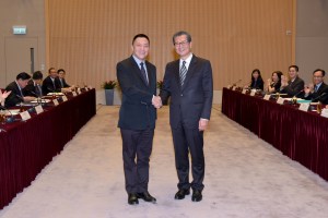 第十次港澳合作高層會議在香港政府總部舉行,經濟財政司司長梁維特和香港特區政府財政司司長陳茂波共同主持會議。